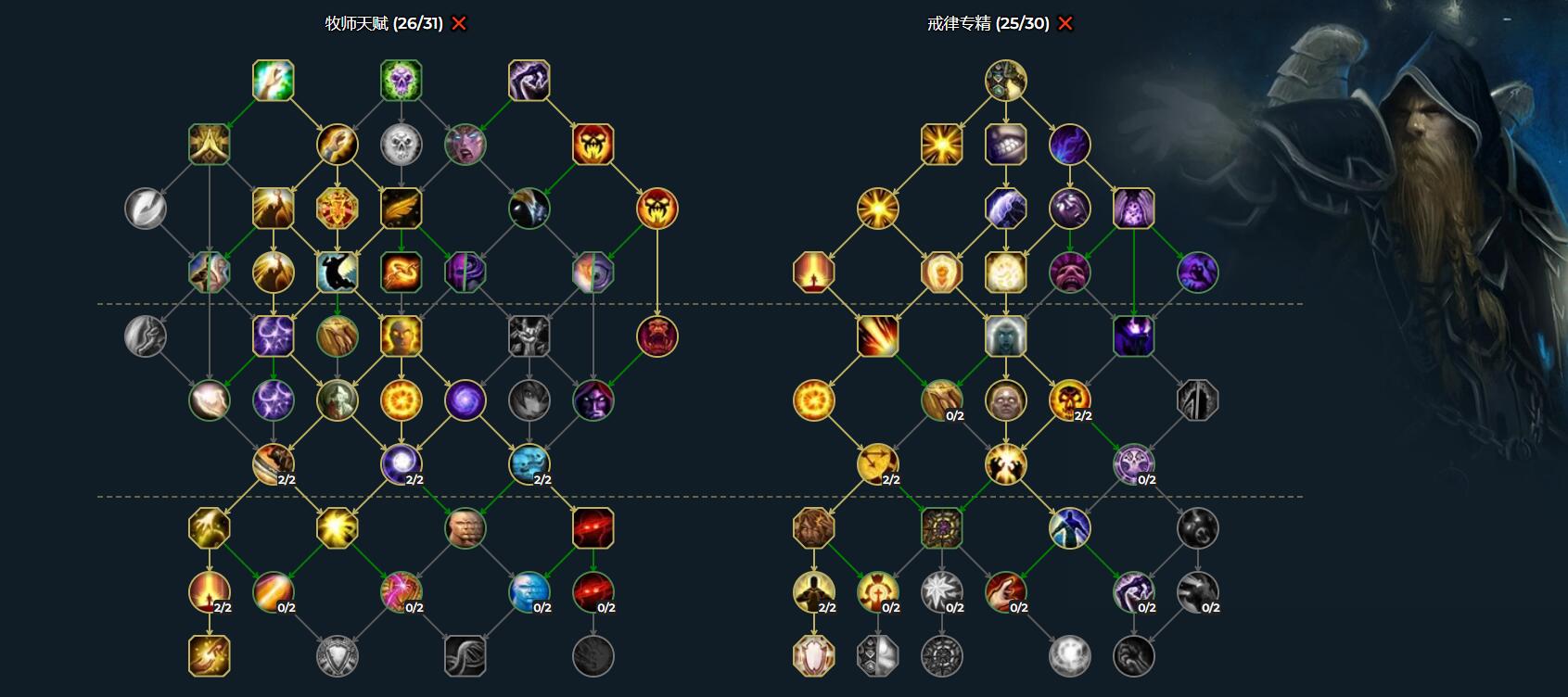 1、这套天赋可以让戒律牧有着不错的输出,靠救赎可以奶更多。