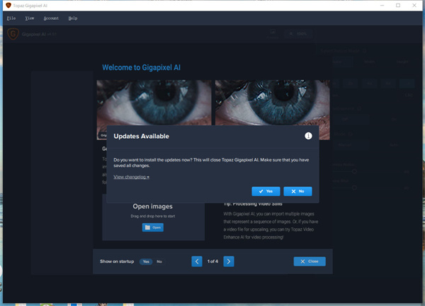 1、首先我们下载安装好Topaz Gigapixel AI,安装的时候安装在除C盘以外的任何盘符都可以。(注意一点,安装好以后,如果打开提醒升级,选择NO)