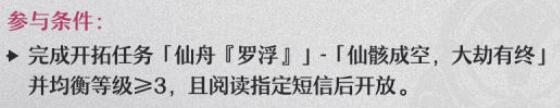4、参与条件:完成开拓任务仙舟罗浮仙骸成空,大劫有终并均衡等级≥3,且阅读指定短信后开放。