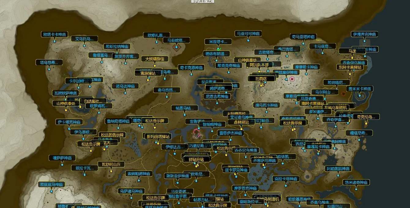 塞尔达王国之泪游戏中在各个地区中都分布着神庙,玩家们需要逐个探索完成解密收集奖励、推动剧情。下面为大家整理了神庙点位坐标位置,大家可以参考以下的坐标和图片去游戏中寻找和挑战。