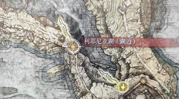 8、我们一直往前来到学院门前镇赐福点,在石碑旁边即可获得地图碎片:利耶尼亚(北),解锁地图,注意学院门前镇下的拉斯卡废墟赐福点要激活后面有用。