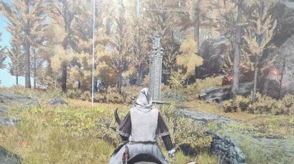 3、我们到关卡前方激活赐福即可看防火女获得马,再去废墟中,触摸营地石碑,即可获得地图碎片:宁姆格福(西),解锁地图。