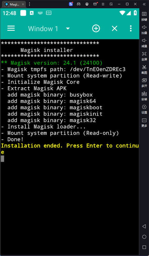 4、打开面具控制台Magisk Terminal ,接下来需要几步输入命令行的操作。