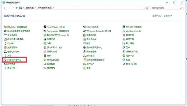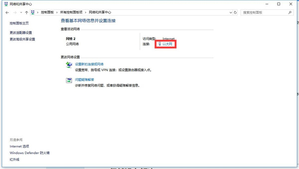 2、点击网络和共享中心。