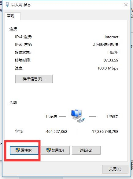 3、接着进入“以太网”,选择属性;如果是Win7系统和Win10系统,鼠标左键双击进入“Internet协议版本4(TCP/Pv4)”,如果是XP系统则鼠标左键双击进入“Internet协议版本(TCP/IP)”即可。