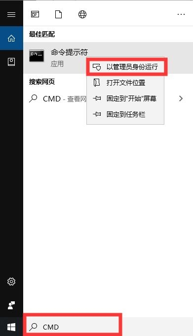 6、如果问题仍然没有解决,请打开命令指示符,电脑左下角直接搜索CMD或命令指示符,然后右键命令指示符用管理员权限打开。