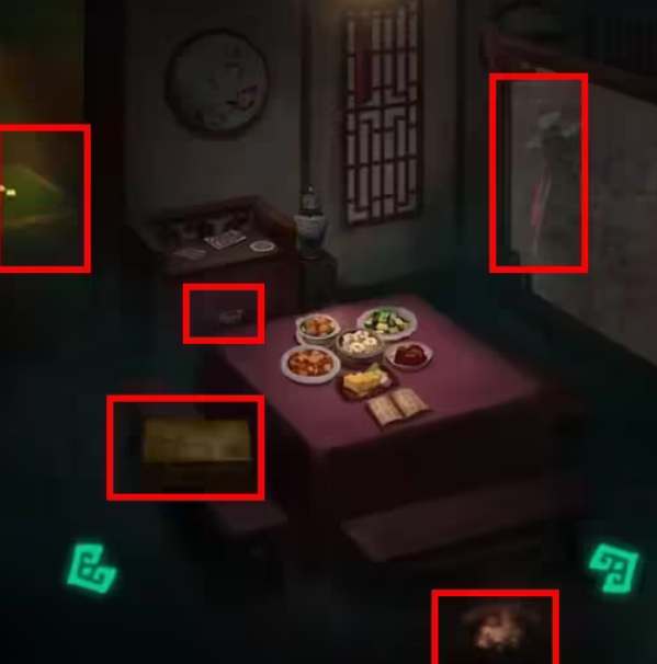 1、查看正堂上桌子,托盘里撕碎的冥钞,旁边的盒子需要两个蝴蝶钥匙才能打开,拿走蜡烛。