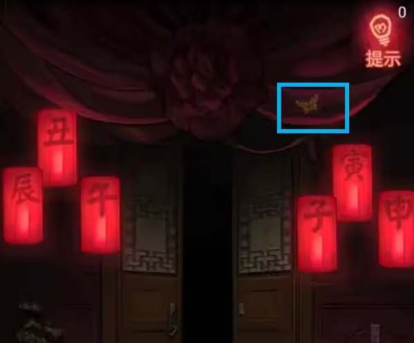 打开大门右侧的柜子获得剪刀。用剪刀剪地上的火盆得到红布。用红布擦二老的遗像可获得线索。