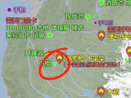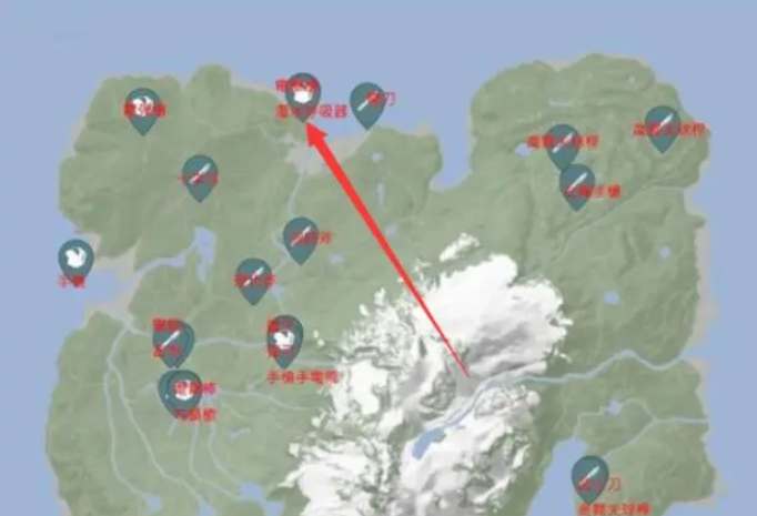 游戏中的铲子需要前往雪山下方的洞穴中获取,山洞的位置在下图所示的红圈里,在此之前需要准备绳索枪和潜水器。