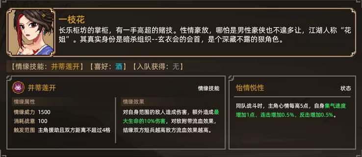 在生死局开始那天到霖安城·聚财坊前,触发剧情,赢关他们钱后,触发战斗,一枝花表示不是没有进一步发展的可能;