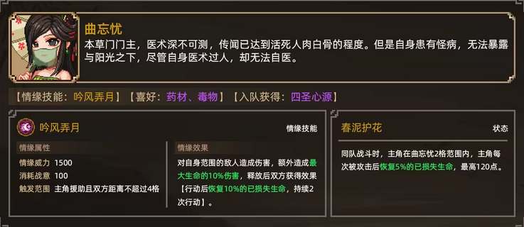 2、曲忘忧结缘攻略