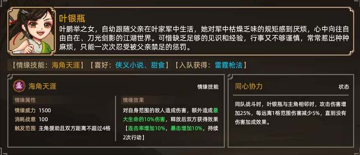 到叶家军即可邀请叶银瓶入队,获得雷霆枪法(长兵);