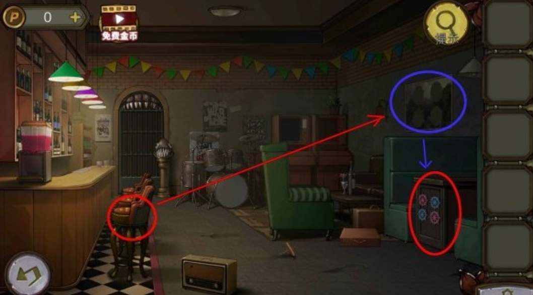 109、根据4个地方的提示,解开箱子的机关谜题,打开箱子,获得"圆片"。