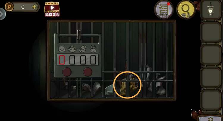2、根据柜子旁的连线图,解开笼子的锁,拿到手套。
