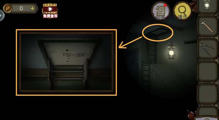 10、根据舱盖上的提示,输入密码打开左边电箱,拿到太阳钥匙。解谜思路:FQI向箭头方向(前)推2个字母,对应DOG。