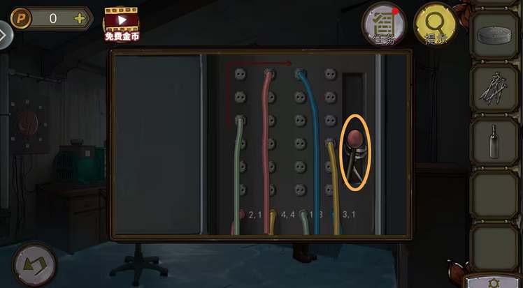 15、根据线索,先输入控制台密码,再点一下右边的把手,启动电源。解谜思路:控制台左边有运算符号,符号对应不同的颜色,将线索中的数进行对应的运算。