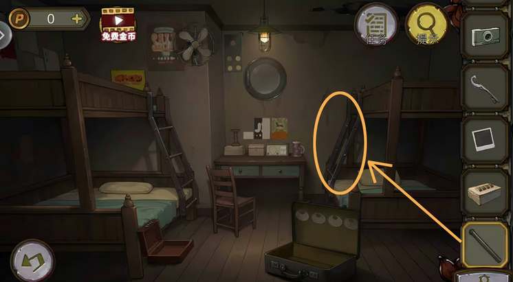 26、用放大镜看钢笔的笔头,得到密码,打开床尾的密码箱,拿到齿轮。