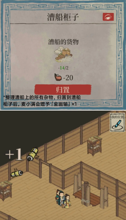完成主线任务,收拾一下麦小满的漕船,也会获得金画轴。