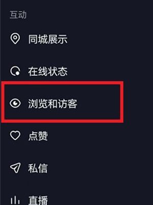 3、之后需点击账号下面的隐私设置。进入之后点击浏览和访客。