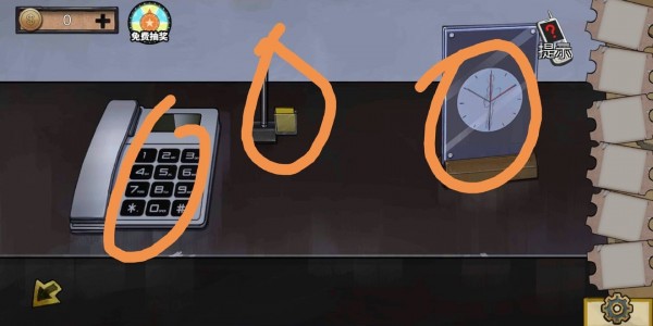 2、在前台拿到笔,另外的电话和钟表是解密线索,后面会用到。
