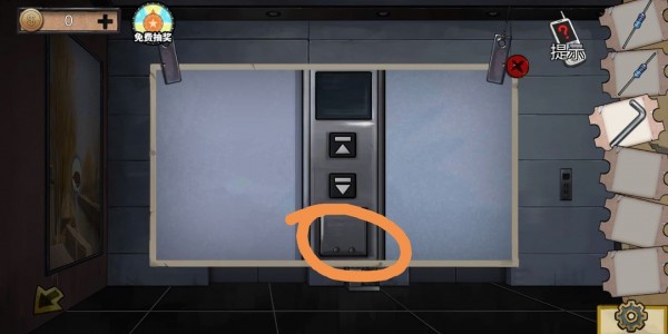 7、通过以后来到电梯间,在电梯门上拿到捡到,用剪刀剪开图画拿到六角扳手和电阻,在垃圾桶上拿到电阻。