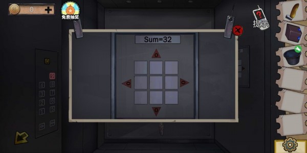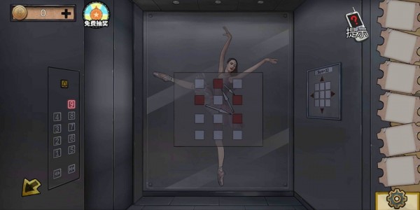 13、舞蹈演员旁边的方块对应一楼前台电话的拨号盘,方块对应拨号盘,这是后面要用到的谜题线索,意思是:在上下左右各两次的移动中,点击数字之和必须是32。