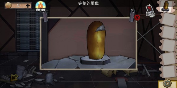 19、空桶、水泥和桶装水组合水泥,粘住雕像,获得完整的雕像,把雕像放在门左边的石阶上的凹槽里面开门。
