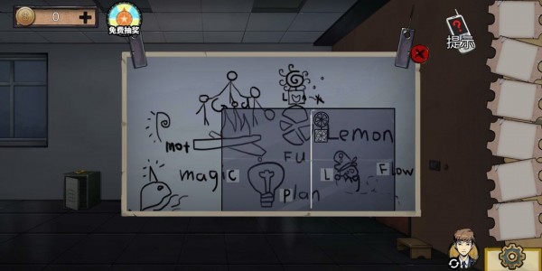 22、通过涂鸦和卡片结合获得密码cple。然后点击门旁边的红色按钮打开门,然后切换到男主视角。