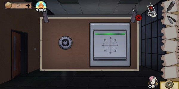 20、开门以后点击密码盘,这个图案的意思是XX的地方不要放按钮。然后切换视角到女主。