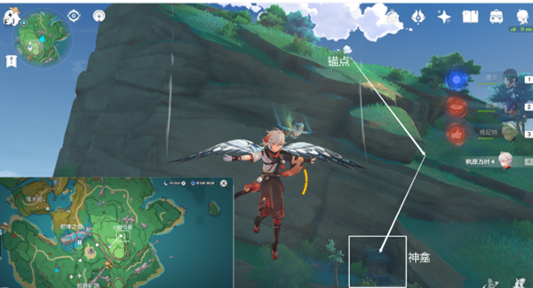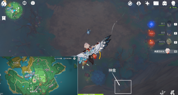 2、第二个神龛的位置还是在八酿岛,我们先传送到八酿岛的传送锚点,然后地图东北方向向下飞就能看见了。