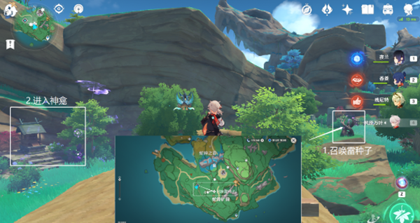 1、首先我们要去寻找第一个神龛,位置在八酿岛的神像附近。