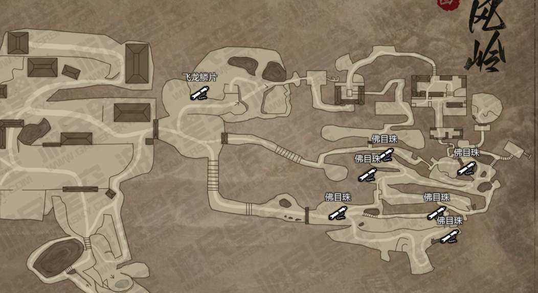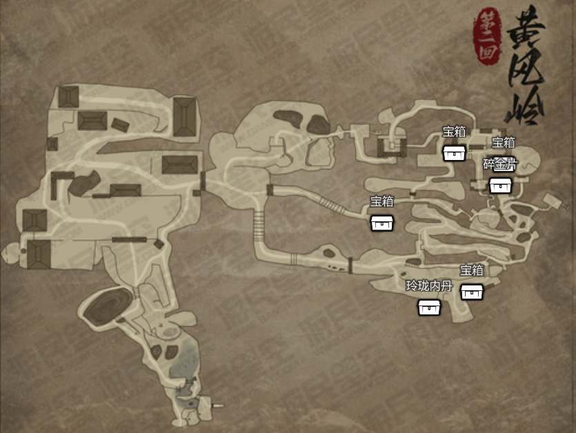 第二章黄风岭宝箱的分布如下图所示,一共有6个。