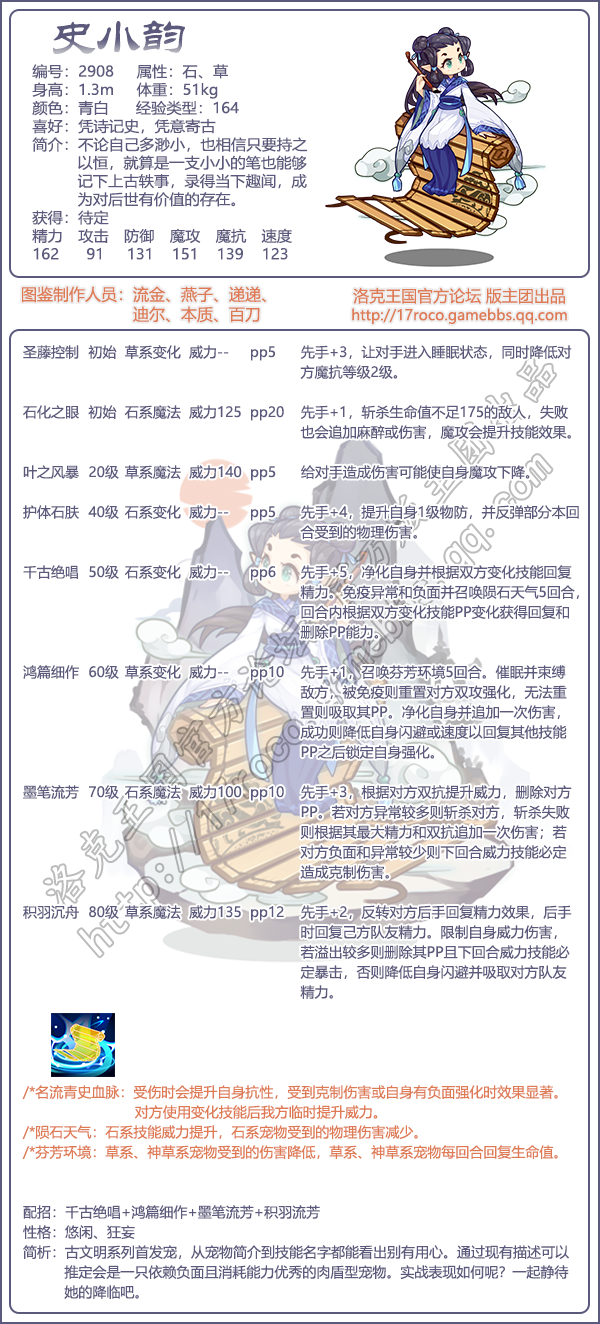 洛克王国史小韵,是新增的古文明系列宠物,书香气十足,在游戏中属于肉盾型,洛克王国史小韵怎么样?下面小编给大家带来洛克王国史小韵技能表介绍,一起看看吧。