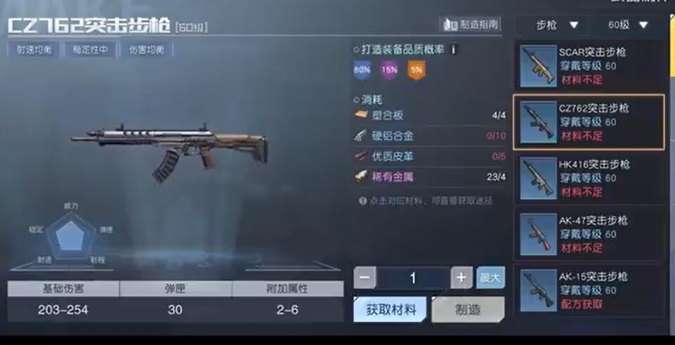 3、六十级的图纸需要的是塑合板块和硬铝合金两种合金,可以在工作台里面合成出来的,稀有的金属需要玩家去刷或者开箱子,材料的稀有限制了玩家造武器的数量。