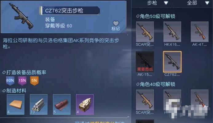 在游戏黎明觉醒中有很多种不同的武器,每一种武器的获取方式不一样,cz762是玩家可以使用图纸解锁的步枪武器之一,但是很多玩家不知道具体怎么做,那么下面就为大家分享黎明觉醒cz762怎么做,感兴趣的快来看看吧。
