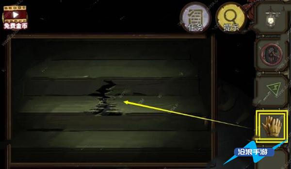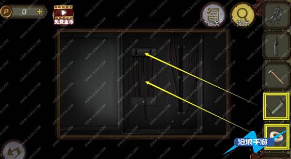 4、点击电梯,用手套撬开裂缝,得到把手。