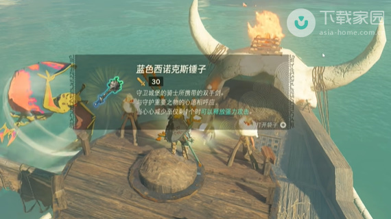 4、消灭之后来到上方的瞭望台位置,即可看见一个宝箱,打开宝箱j即可获得蓝色西诺克斯锤子;