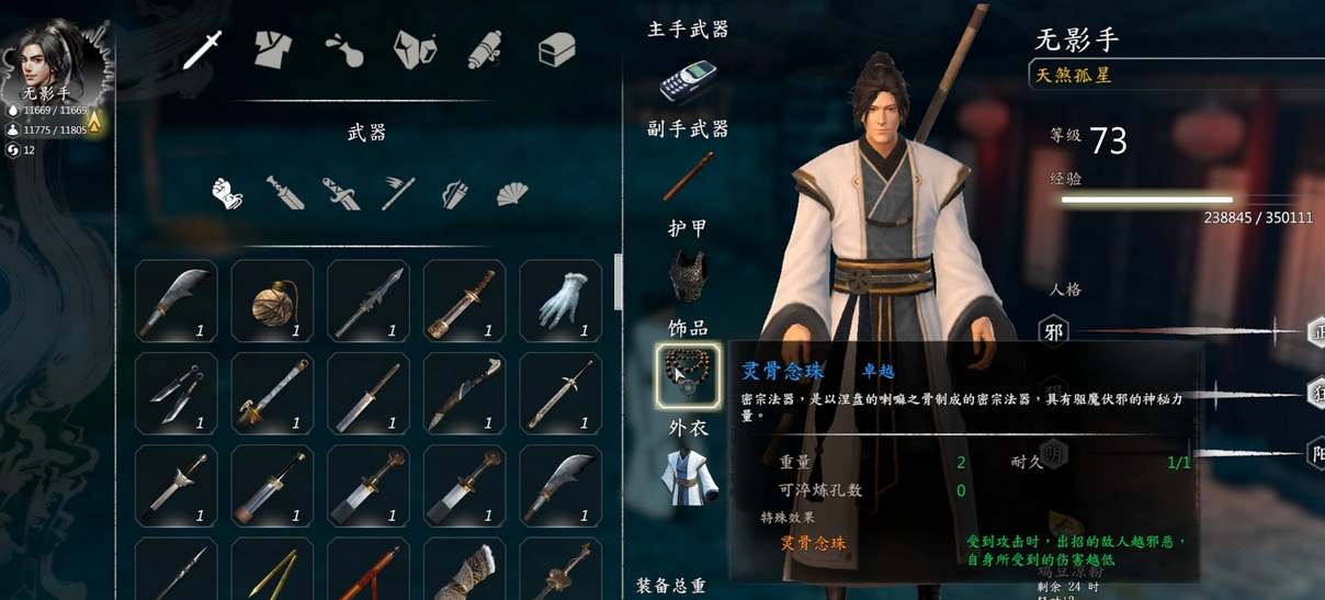 效果:没有可操作队友时攻击威力与减伤效果提高50%,每回合解除所有负面状态12点,同时每三次攻击会替自己回复15%的生命与内力。