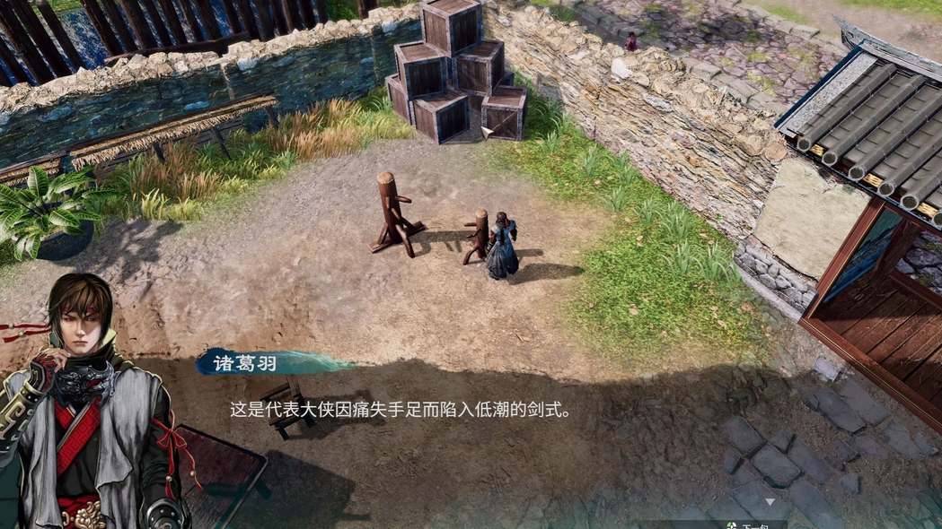 在村长家的木桩出示招式,全部施展一遍后就可以获得剑话当年了。