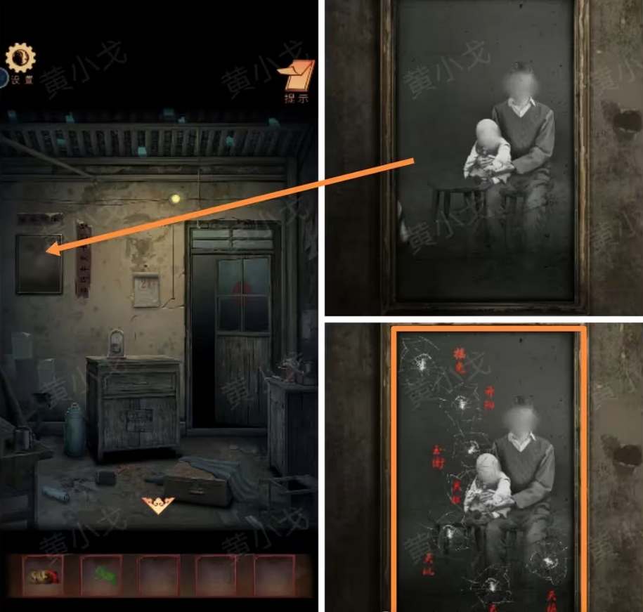 6、客厅点击墙上的相框触发剧情,获得线索:摇光、开阳、玉衡、天权、天玑、天璇、天枢。