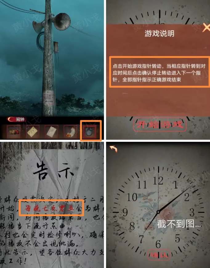 16、把闹钟对准喇叭根据告示上的线索完成小游戏,喇叭开始播报后获得线索4861