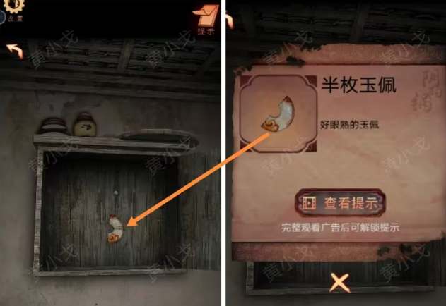 27、打开壁柜获得半枚玉佩。