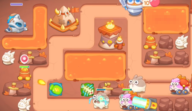 10、这一关主要是打BOSS,BOSS会不断下蛋炸掉我们塔防,不过好在有幽灵剑士帮助,具体炮塔如下。