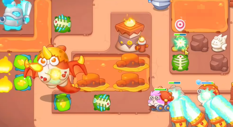 3、钱袋打掉之后,空出位置,继续建立瓶子炮,清理周围障碍物。
