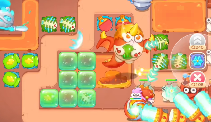 5、第四波恶魔兔出现,在右下角继续增加手电筒,上面帐篷打掉之后,建立鱼刺,快速激活左上幽灵剑士。