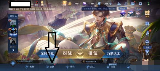 1、我们首先打开王者手游,点击大厅下方的定制图标;