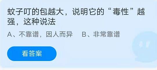 问题:蚊子叮的包越大,说明它的毒性越强,这种说法?