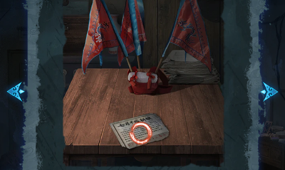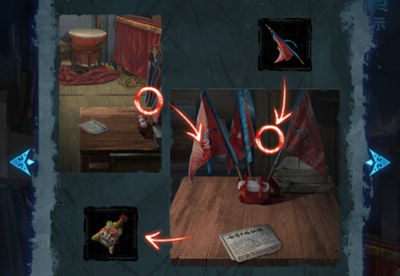 22、根据报纸线索,使用小棒子按如图顺序敲击乐器后,可以在大衣箱中拾取布娃娃。