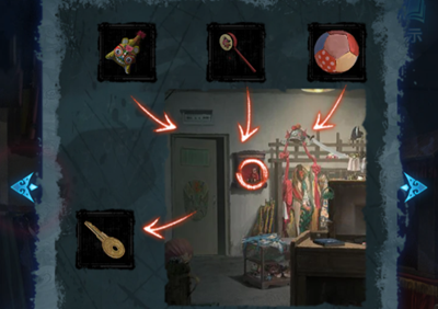 28、将布球、拨浪鼓、布老虎全部摆放到神龛上拾取钥匙。