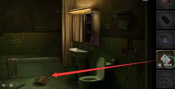 2、接着我们会来到厕所,我们把蜡笔放到厕所中的脸盆中。